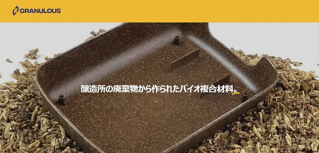 Granulous グラニュラスはビール醸造で廃棄物となる穀物粕を有効利用した射出成型用プラスチック材料です。