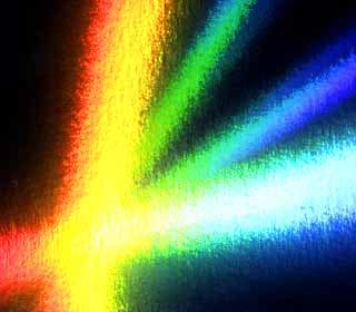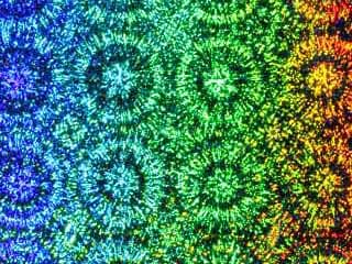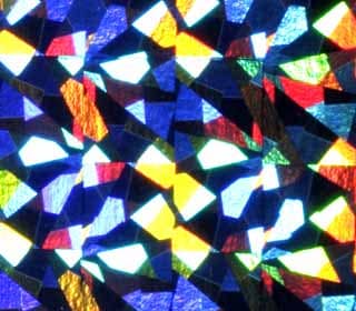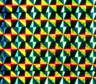 美麗なひとつひとつの三角形のピースが放射状に規則正しく配置され、七色のグラデーションが非常に鮮やかに反射します。