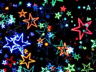 大小さまざまの星型パターンが傾斜角度に応じて次々に現れては消え、色彩も七色に変化します。